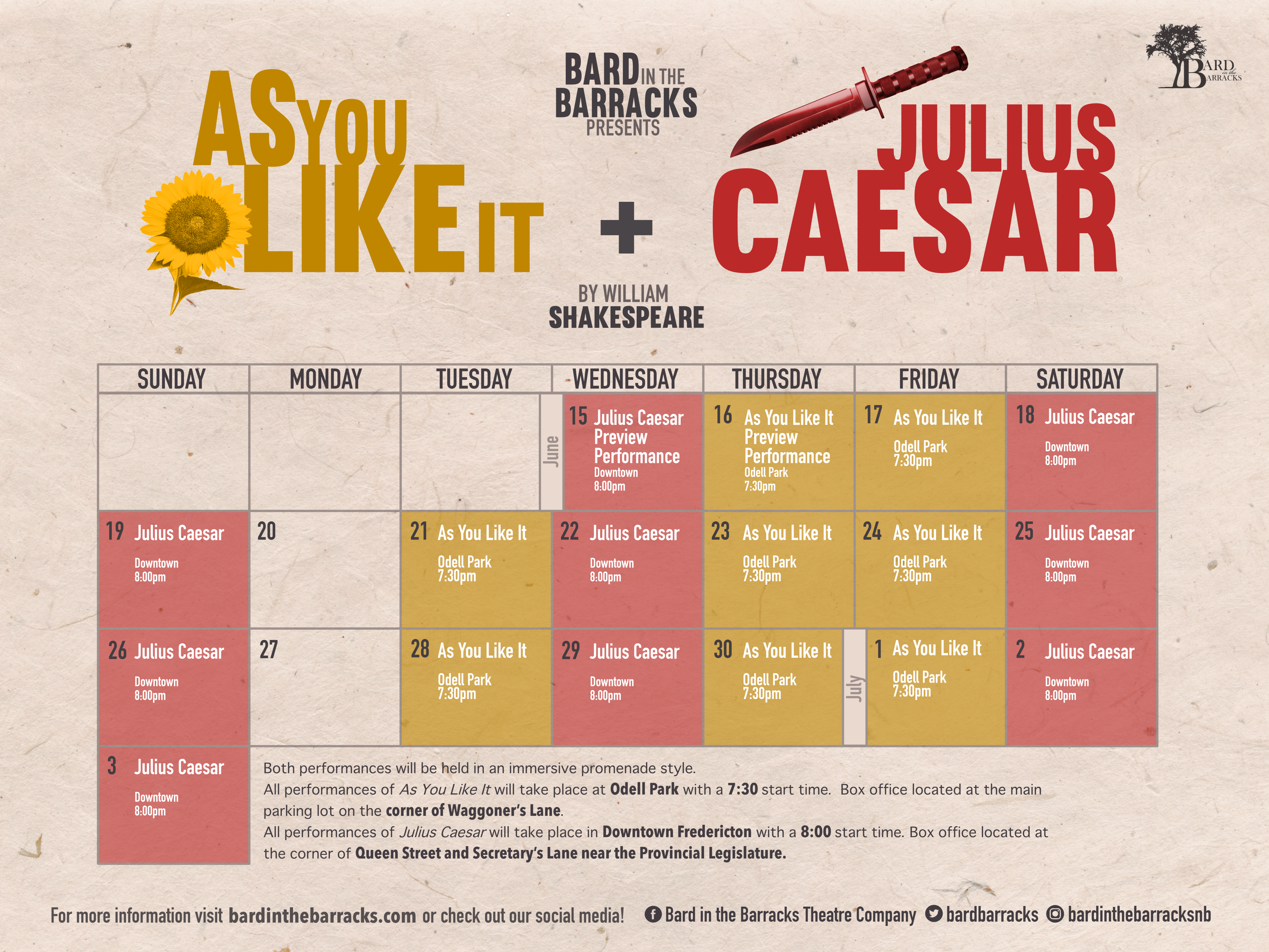 Tickets are on sale now at https://www.eventbrite.ca/o/bard-in-the-barracks-33541233539